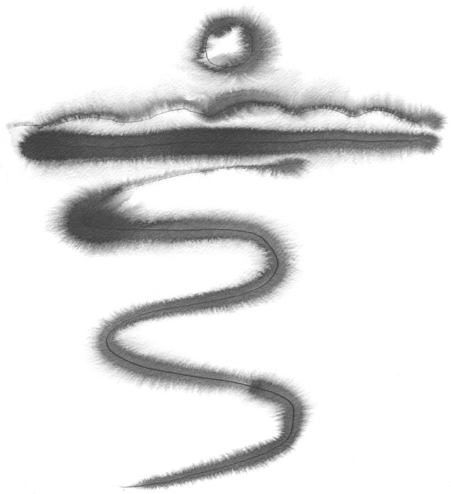 | moving moving towards the western horizon into wide open spaces of unbounded freedom and time where there is no distinction between wind sky thought and mind and life is limitless here now upon this Path limitless unrestricted by the regret of the past and the fear of the future life is only the Journey continuing continuing here now upon this Path in an instant reborn Body and Being are transformed and uplifted with new Life Spirit into a joyous new Life Beginning beginning beginning always beginning breathing in deeply deeply accepting receiving the Breath the Spirit of Life following simply following the Breath following the Spirit of Life submitting to Life fulfilling the Spirit's need choosing and being chosen to go where the Spirit of Life leads totally selfless and free free free with every step opening opening the eyes awakening becoming more aware more attentive more receptive to the possibilities and potential of Life perceiving the Beauty of Life Everywhere |